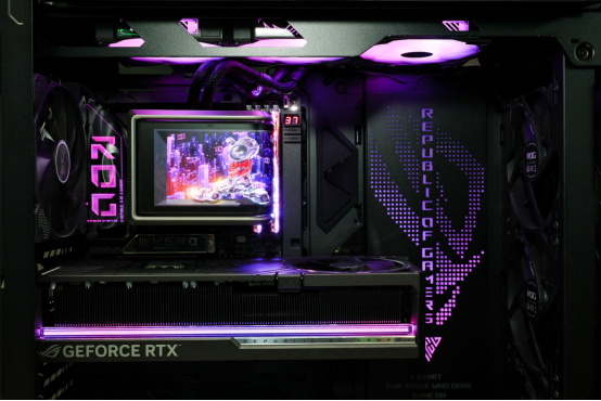 ROG跑车MOD主机以ROG CROSSHAIR X870E EXTREME主板为核心,作为X870板皇的存在,ROG CROSSHAIR X870E EXTREME拥有无可匹敌的性能、无出其右的创新功能和颠覆传统的美学设计,是玩家梦寐以求的终极神装。近乎全覆盖的装甲,加之硕大的ROG LOGO,信仰之力满满。特别是IO装甲处的全彩5英寸LED显示屏,可实时显示硬件信息和定制图案,个性化十足。