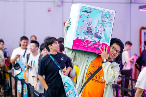多样化的ROG产品,热情洋溢的ROG粉丝,一同构筑起一个真实的ROG玩+乐园。参与打卡现场互动活动的玩家,可兑换RO姬大礼包或天选大姬礼包,并有机会抽取华硕天选B850主板初音未来版、华硕天选RTX5060Ti O8G显卡初音未来版、华硕天选360LCD水冷初音未来版、华硕天选A23机箱初音未来版、华硕天选游戏路由初音未来版、ROG掌机、ROG游戏手机9 PRO、ROG绝杀显示器等终极大奖。现场玩家的欢呼声、掌声和呐喊声此起彼伏,形成了一股强大的声浪。而抱着丰厚限定礼品的玩家们,笑容更是溢出屏幕,喜悦之情溢于言表。