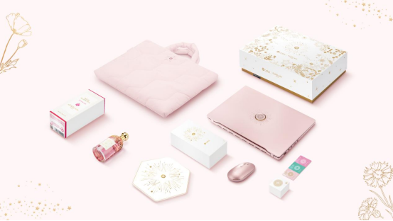 进阶出色、向美而生,华硕a豆携手法国娇兰在“光之美学”的框架下相遇,打造闪光礼盒,礼盒内含定制华硕a豆14Air 香氛版、法国娇兰奇迹花园淡香水、定制云朵电脑包、定制星芒无线鼠标、六边形星芒鼠标垫,并可选配华硕a豆香氛机械键盘。
