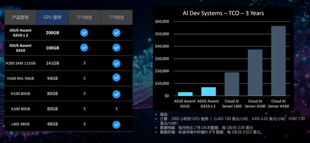 同时,等算力情况下,GX10的部署与使用成本是本地部署工作站成本的十分之一甚至更低,并节约了大量数据传输的时间成本和存储成本,成为最有性价比的AI落地方案之一。