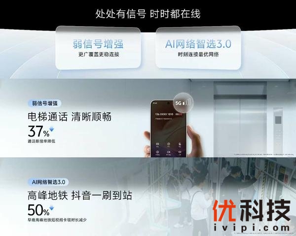 vivo对弱信号增强算法进行了全面升级,成功将通话断续率大幅降低 37%。即使在电梯里只有一格信号,通话也能清晰、顺畅。早晚高峰刷短视频很容易卡顿,vivo基于vivo的AI网络智选技术3.0,并且和抖音深度合作,实现在地铁刷短视频卡顿少一半。即使在早晚高峰的地铁上,也能一刷到站。vivo与华中科技大学开展产学研合作,联合升级AI网络预测模型,提前识别Wi-Fi时延波动,毫秒级切换到数据网络。相比原系统5,一小时的时延平均优化20%。在宿舍开黑,也能一直稳稳在线!全链路音视频异构计算行业首创全链路音视频异构计算, 充分释放NPU、DSP等异构计算单元的高能效潜力,实现音视频播放极致低功耗。同时,vivo也和优酷、QQ音乐、快手、酷狗等头部音视频应用合作,进行深度的联合优化。看视频时长最高提升23%, 最长可以看19个小时,听音乐时长最高提升74%,最长可以听122个小时。依据手机的温度智能调节充电策略,实测充电时的机身温度,最高机身下降3摄氏度,减缓发热,电池更健康。