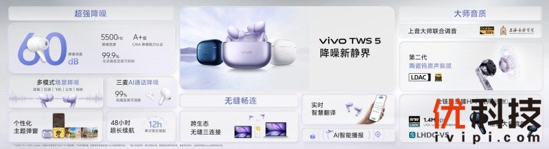 降噪音质全面升级,vivo TWS 5 带来无线原声新体验