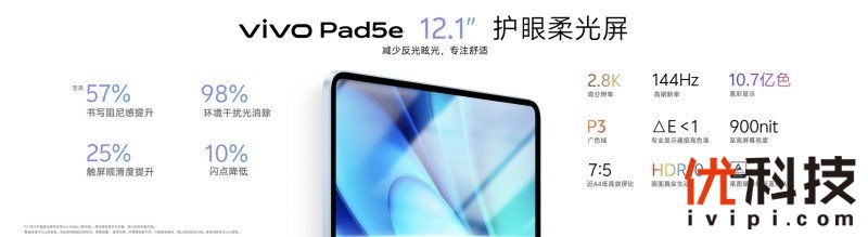vivo Pad5e 定位年轻人优选的长续航学娱全能平板,机身轻薄却“生产力”媲美电脑,兼具同档领先的性能及护眼柔光的大屏视听。