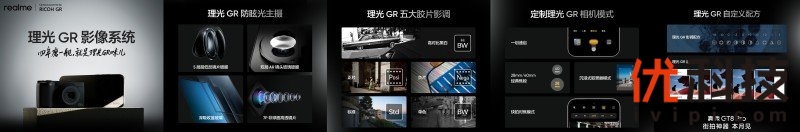 在强大的光学硬件基础上,真我GT8 Pro联合理光GR深度复刻标准、正片、负片、单色、高对比黑白五大经典胶片影调,所有影调均通过数百种照明场景和色彩测试精心打造。此外,真我GT8 Pro还带来了行业最快的“一划速启”联名模式切换,以及复刻超焦距功能的快拍对焦模式,配合专属的相册与理光GR水印,打造独一无二的街拍神器。