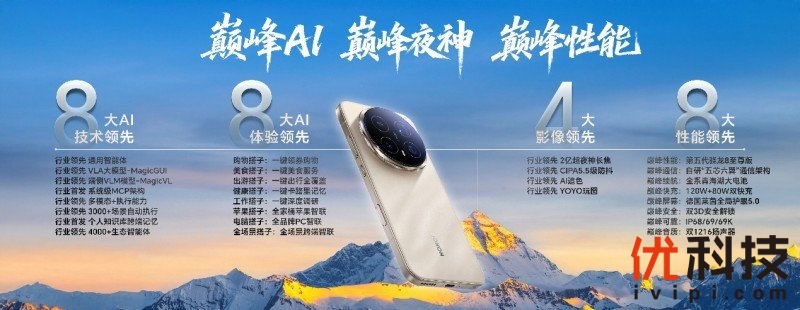 巅峰AI、巅峰夜神、巅峰性能,荣耀Magic8系列不仅是技术参数的进化,更是对下一代AI终端的深刻理解和完美诠释,开启自进化AI原生手机的新时代。以“自进化AI”为脑、以“AiMAGE影像”为眼、以最强性能硬件为体,荣耀Magic8系列创造了一个真正懂用户、为用户、与用户共生共创的万能智慧搭子。在AI发展进入深水区的今天,荣耀Magic8系列正以其全面的AI科技领先性,引领旗舰手机的进化方向。