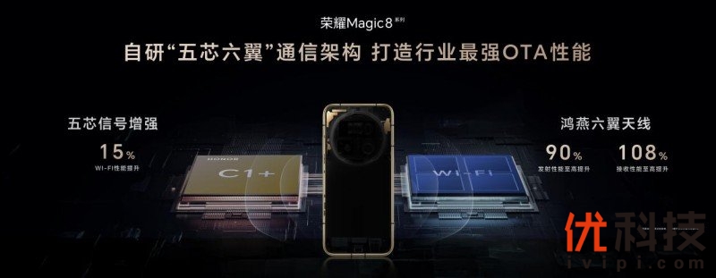 通信方面,荣耀Magic8系列搭载了自研“五芯六翼”通信架构,首发荣耀鸿燕AI云图,并能通过AI自适应信号调谐,实现“不管怎么握,信号都满格”的巅峰通信体验,此外还支持行业领先的23个全球5G频段覆盖和谷歌全家桶服务,信号范围,覆盖全球。