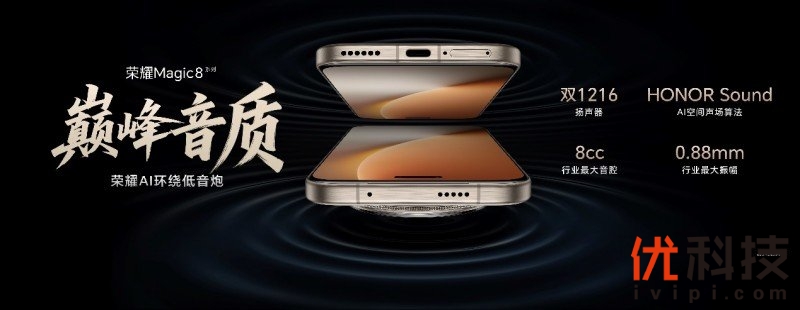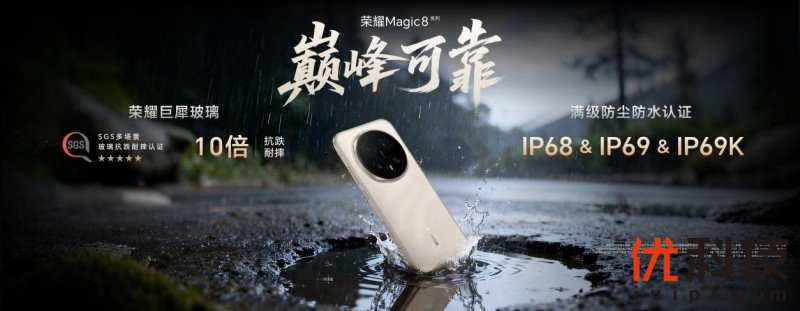 可靠性方面,荣耀Magic8系列配备荣耀巨犀玻璃,10倍抗跌耐摔,获得“SGS整机抗跌耐摔”五星认证,并支持IP68、IP69和IP69K,获满级防尘防水认证;音质方面,荣耀首创开放音腔技术,加上行业顶级双1216扬声器,搭配自研AI声场算法,带来澎湃有力的环绕低音炮巅峰音质。