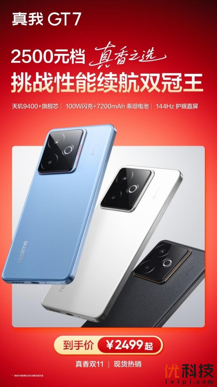 2025年10月15日,真我正式官宣开启「真香双11」狂欢大促。真我GT7 Pro、真我GT7、真我Neo7 Turbo等爆款机型,将于今晚8点现货开售,至高优惠700元。