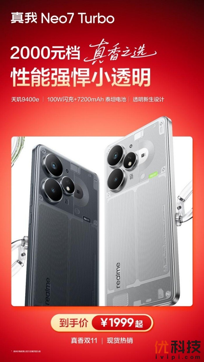 2000元档真香之选:性能强悍小透明真我Neo7 Turbo,双11到手价1999元起