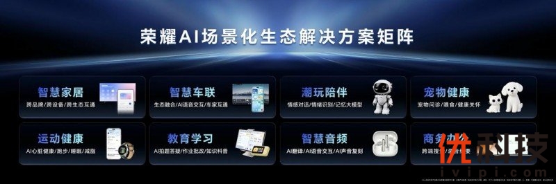 为解决用户面对“场景割裂、服务单一”的智能生态时带来的碎片化体验,并攻克行业长期存在的互联互通难题,荣耀基于HONOR AI Connect平台,发布了8大AI场景化生态解决方案,覆盖智慧家居、智慧车联、潮玩陪伴、宠物健康、运动健康、教育学习、智慧音频、商务办公等场景。此次发布的8大AI场景化生态解决方案深度融合软硬件能力,是荣耀构建AI生态的核心引擎。荣耀将把这些解决方案全面向行业开放,携手合作伙伴共同推进更多AI垂直领域的生态共创,打造一个繁荣、开放、持续进化的AI终端生态,全面构建以人为中心的智能生活闭环。