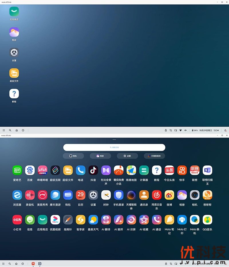 在电脑模式下,联想moto X70 Air化身为一台电脑主机,通过PC端的显示器来进行应用,默认桌面也是非常容易上手,并且可以实时访问机身内的文件以及各类程序。