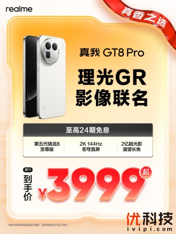 优异销量表现的背后,离不开产品自身过硬的实力。以本次双11的明星产品之一真我GT8 Pro为例,其作为4000元档的性能影像双擎旗舰,搭载行业唯一第五代骁龙8至尊版+2K直屏+2亿长焦,更是首发理光GR影像系统,从性能游戏和影像拍摄上,都带来真旗舰的体验。此外,同样主打中高端市场的真我GT8,则是搭载骁龙8至尊版,以及Pro同款的理光GR联名和2K 144Hz直屏,配合同档罕见的5000万超光影潜望长焦,是价位段内的最强标准版,也是3000元档的真香之选。