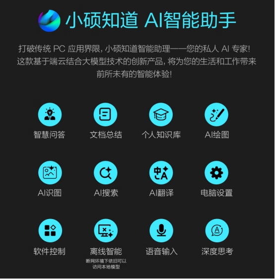 身处AI时代,华硕无畏Pro16 2025内置“小硕知道”AI智能助手,成为你工作提效的秘密武器。它支持智慧问答、文档总结、AI绘图、AI识图、AI搜索、AI翻译等多个功能,日常写文案、整理资料时,可以帮你找灵感、生成初稿或提炼核心信息,AI识图与翻译功能则适配跨语言办公、图片信息提取场景,大幅提升日常效率。更实用的是,“小硕知道”基于端云一体AI大模型,无网络环境下也能继续使用,避免在飞机高铁、户外等场景中因信号问题中断效率。