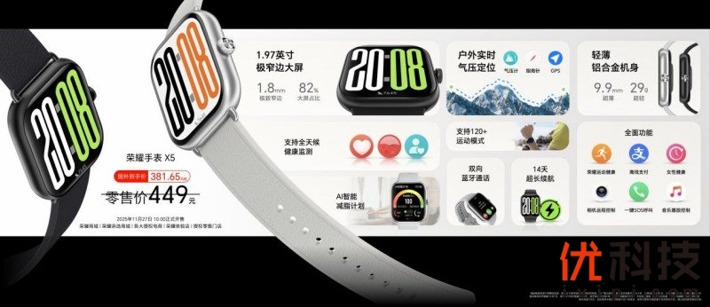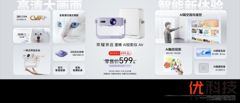 此外,荣耀500系列新品发布会还带来了多款重磅新品。荣耀500系列带来超级标准版和超级Pro版,以2亿人像全能实况、骁龙8系旗舰芯片、8000mAh青海湖大电池超长续航、超美水晶小直屏最强质感,重塑档位标准,为用户带来一步到位的用机体验。荣耀手表X5作为荣耀手表迄今最大屏、最窄黑边、最轻薄的方表,是档位中唯一同时配备游泳级防水、独立GPS的智能手表;荣耀Earbuds S具备深度降噪、空间音频,拥有超长续航;荣耀亲选萤蜂Al投影仪Air获得京东亮度认证,投影表现更亮更清晰,搭载创新AI 智能操控,带来全新操控交互体验,点得准,更玩得爽!