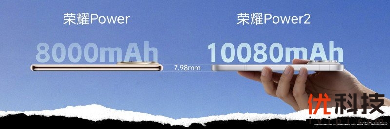 新一代荣耀Power2搭载行业最大10080mAh第四代青海湖电池,相比上一代增加高达2080mAh,续航表现再度突破行业极限,并在TÜV莱茵实验室的标准综合场景续航测试中斩获最长续航手机的佳绩。同时,通过将电池硅含量提升至15%,实现行业领先的926Wh/L能量密度,荣耀Power2将机身厚度精准控制在7.98mm,做到了让续航体验跨越式升级的同时,依然保持和上一代相同的超薄机身。