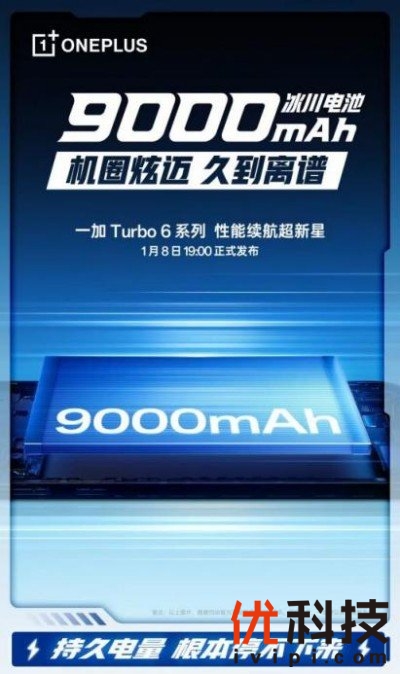 一加 Turbo 6系列搭载同档最大9000mAh冰川电池