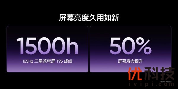 得益于M14基材带来发光能效提升,这块屏幕打破了高性能必高耗电的魔咒,实测对比行业其他发光基材,屏幕发光能效提升26%,在165Hz模式下的功耗甚至低于传统144Hz屏幕16%,真正实现了极致流畅与长效续航的完美共存。在耐用性方面,真我Neo8更是通过1500小时T95亮度衰减测试,真正做到“屏幕亮度久用如新”。