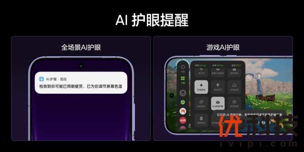 通过“全亮度DC调光+硬件级低蓝光+智慧护眼”的软硬件协同,真我Neo8构建全场景护眼体验。屏幕支持全亮度DC调光,SVM低至0.05,接近“零频闪”,并通过了TÜV莱茵无频闪认证;智慧护眼则融合AI眼疲劳守护、舒眠模式与环境色自适应,智能适配不同使用场景,长时间用眼也更舒适。同时,得益于 M14 基材的光谱优势,真我Neo8从源头实现硬件级低蓝光控制。在此基础上,真我还搭载 AI 主动护眼体系,覆盖全场景 AI 护眼与游戏 AI 护眼,在保证沉浸体验的同时,提供更全面、更智能的视力守护。